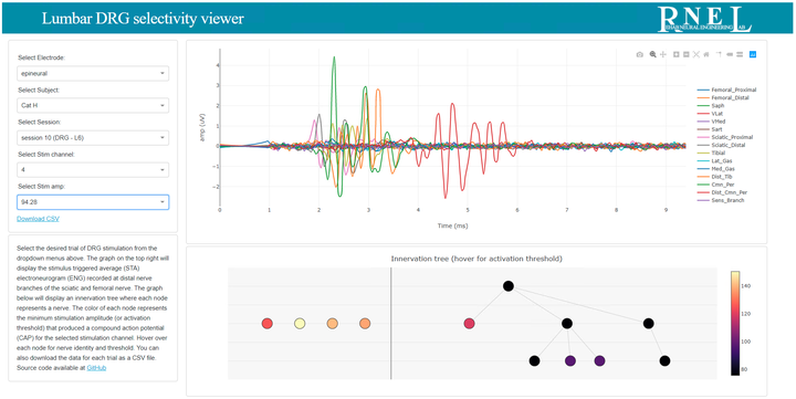 Selectivity dashboard May 1, 2018 Go to Project Site Follow Github Dashboard for visualizing stim triggered ENG data visualization DRGs cat Ameya C. Nanivadekar Neural Engineer Related DRG stimulation Modeling DRG stimulation Sensory dashboard RNEL Percept Mapper